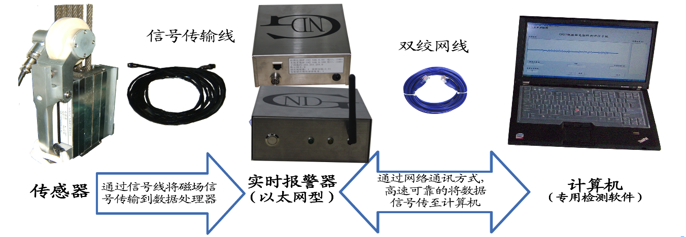 NDTPC15 | (檢測鋼絲繩直徑不大于14mm) | 以太網(wǎng)型多功能實(shí)時報(bào)警器(有線) 或以太網(wǎng)型多功能實(shí)時報(bào)警器(無線) | 鋼絲繩監(jiān)控系統(tǒng)軟件 |
