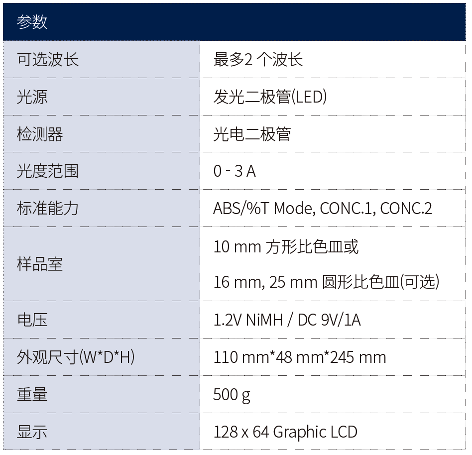 ·可存儲6條標(biāo)準(zhǔn)曲線和100個測量值